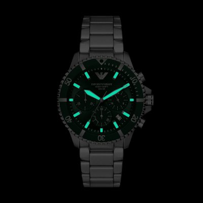 This Emporio Armani watch has a case made of Steel silver with a diameter of 43 mm and is fitted with a Steel silver strap. Inside the case lies a Seiko movement and the watch features a Mineral crystal.