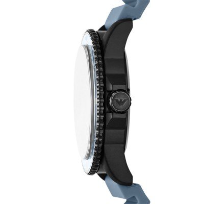 This Emporio Armani watch has a case made of Steel silver with a diameter of 42 mm and is fitted with a rubber strap. Inside the case lies a Seiko Instruments Inc. movement and the watch features a Mineral crystal.
