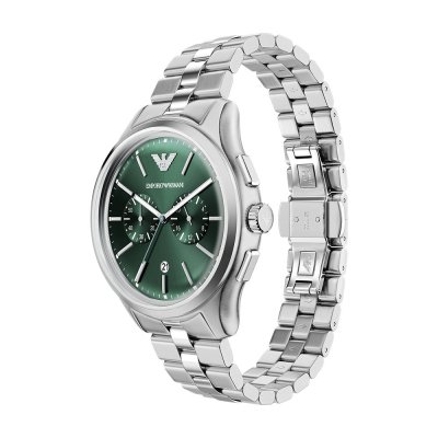 This Emporio Armani watch has a case made of Steel silver with a diameter of 42 mm and is fitted with a Steel silver strap. Inside the case lies a Miyota movement and the watch features a Mineral crystal.