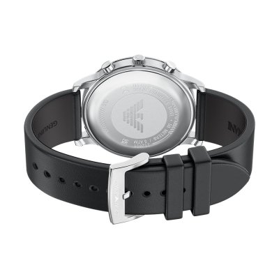 This Emporio Armani watch has a case made of Steel silver with a diameter of 42 mm and is fitted with a leather strap. Inside the case lies a Miyota movement and the watch features a Mineral crystal.