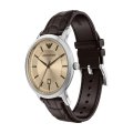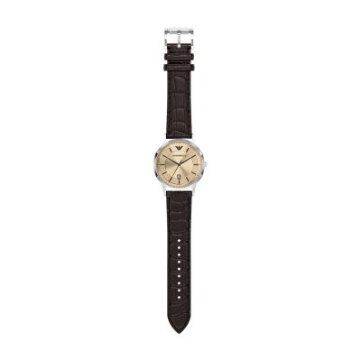 This Emporio Armani watch has a case made of Steel silver with a diameter of 43 mm and is fitted with a leather strap. Inside the case lies a Seiko Instruments Inc. movement and the watch features a Mineral crystal.