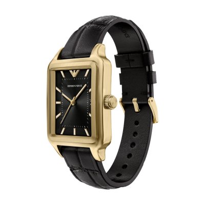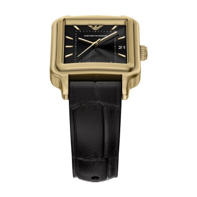 This Emporio Armani watch has a case made of Steel silver with a diameter of 32 mm and is fitted with a leather strap. Inside the case lies a Miyota movement and the watch features a Mineral crystal.