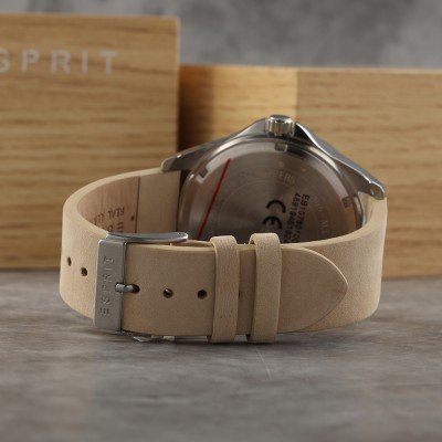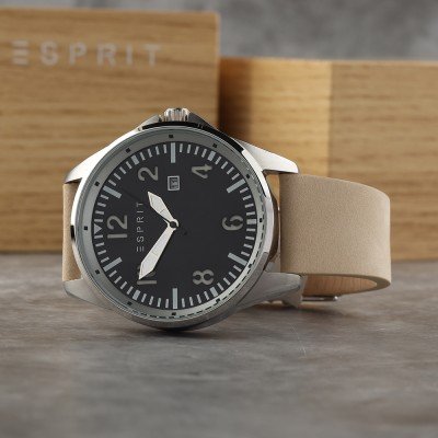 This Esprit watch has a case made of Steel silver with a diameter of 45 mm and is fitted with a leather strap. Inside the case lies a Miyota movement and the watch features a Mineral crystal.