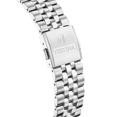 This Festina watch has a case made of Steel silver with a diameter of 41 mm and is fitted with a Steel silver strap. Inside the case lies a Soprod movement and the watch features a Sapphire crystal.
