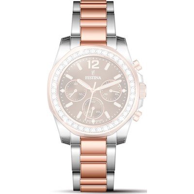 This Festina watch strap is made of stainless steel and is attached to the watch by means of push pins. The band has a width of 19 mm and is closed by means of a deployment clasp with push buttons. The strap has no straight mount which means that this strap is only suitable for the watches listed below.