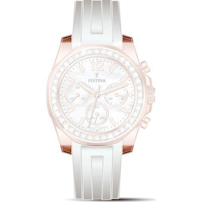 This Festina watch strap is made of silicone and is attached to the watch by means of quick release pushpins. The band has a width of 19 mm and is closed by means of a buckle. The strap has no straight mount which means that this strap is only suitable for the watches listed below.