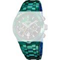 This Festina watch strap is made of stainless steel and is attached to the watch by means of steel pins. The band has a width of 28 mm and is closed by means of a deployment clasp with push buttons. The strap has no straight mount which means that this strap is only suitable for the watches listed below.