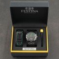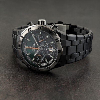 This Festina watch has a case made of Steel silver with a diameter of 44.5 mm and is fitted with a Steel silver strap. Inside the case lies a Miyota movement and the watch features a Mineral crystal.