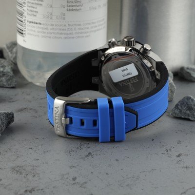 This Festina watch has a case made of Steel silver with a diameter of 44.5 mm and is fitted with a rubber strap. Inside the case lies a Miyota movement and the watch features a Mineral crystal.