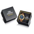 This Festina watch has a case made of Steel silver with a diameter of 45.5 mm and is fitted with a leather strap. Inside the case lies a Miyota movement and the watch features a Mineral crystal.