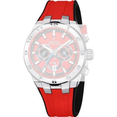 This Festina watch strap is made of silicone and is attached to the watch by means of steel pins. The band has a width of 28 mm and is closed by means of a buckle. The strap has no straight mount which means that this strap is only suitable for the watches listed below.