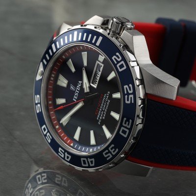 This Festina watch has a case made of Steel silver with a diameter of 45 mm and is fitted with a rubber strap. Inside the case lies a Miyota movement and the watch features a Sapphire crystal.