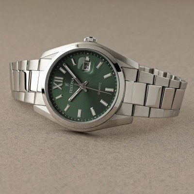 This Festina watch has a case made of Steel silver with a diameter of 40 mm and is fitted with a Steel silver strap. Inside the case lies a Miyota movement and the watch features a Mineral crystal.