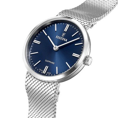 This Festina watch has a case made of Steel silver with a diameter of 29 mm and is fitted with a Steel silver strap. Inside the case lies a Ronda movement and the watch features a Sapphire crystal.