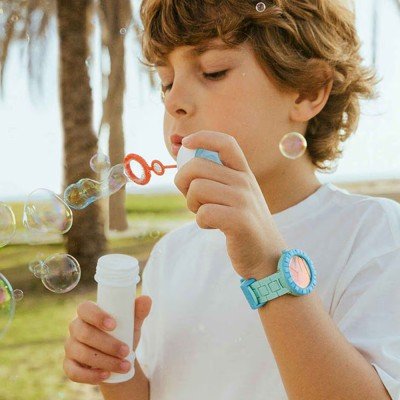 This Flik Flak watch has a case made of Plastic / Resin with a diameter of 34.5 mm and is fitted with a rubber strap. Inside the case lies a ETA movement and the watch features a Acrylic crystal.