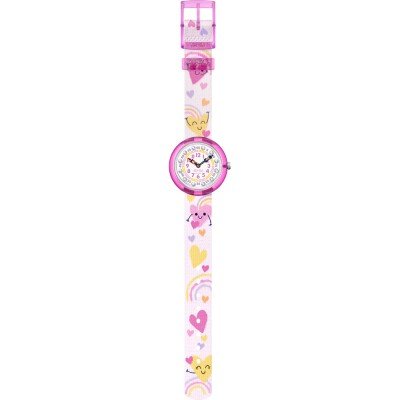 This Flik Flak watch has a case made of Bio-sourced resin with a diameter of 29.5 mm and is fitted with a textile strap. Inside the case lies a ETA movement and the watch features a Acrylic crystal.