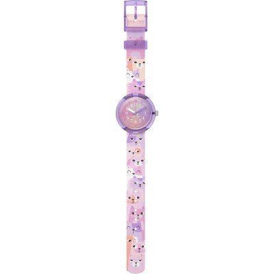 This Flik Flak watch has a case made of Bio-sourced resin with a diameter of 30 mm and is fitted with a textile strap. Inside the case lies a ETA movement and the watch features a Acrylic crystal.