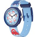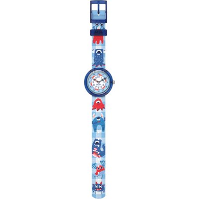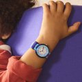 This Flik Flak watch has a case made of Bio-sourced resin with a diameter of 30 mm and is fitted with a textile strap. Inside the case lies a ETA movement and the watch features a Acrylic crystal.