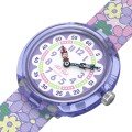 This Flik Flak watch has a case made of Bio-sourced resin with a diameter of 29.5 mm and is fitted with a textile strap. Inside the case lies a ETA movement and the watch features a Acrylic crystal.