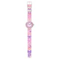 This Flik Flak watch has a case made of Bio-sourced resin with a diameter of 30 mm and is fitted with a textile strap. Inside the case lies a ETA movement and the watch features a Acrylic crystal.