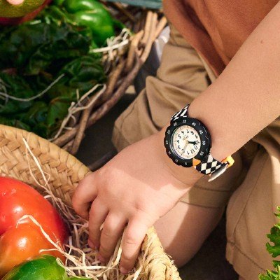 This Flik Flak watch has a case made of Bio-sourced resin with a diameter of 33.6 mm and is fitted with a textile strap. Inside the case lies a ETA movement and the watch features a Acrylic crystal.