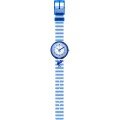 This Flik Flak watch has a case made of Bio-sourced resin with a diameter of 30 mm and is fitted with a textile strap. Inside the case lies a ETA movement and the watch features a Acrylic crystal.