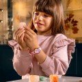 This Flik Flak watch has a case made of Bio-sourced resin with a diameter of 30 mm and is fitted with a textile strap. Inside the case lies a ETA movement and the watch features a Acrylic crystal.