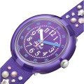 This Flik Flak watch has a case made of Plastic / Resin with a diameter of 30 mm and is fitted with a textile strap. Inside the case lies a ETA movement and the watch features a Acrylic crystal.