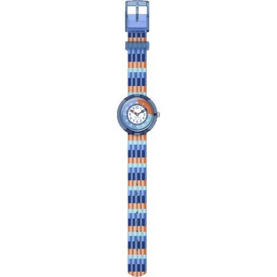This Flik Flak watch has a case made of Bio-sourced resin with a diameter of 29.5 mm and is fitted with a textile strap. Inside the case lies a ETA movement and the watch features a Acrylic crystal.