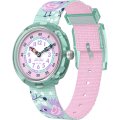 This Flik Flak watch has a case made of Bio-sourced resin with a diameter of 30 mm and is fitted with a textile strap. Inside the case lies a ETA movement and the watch features a Acrylic crystal.