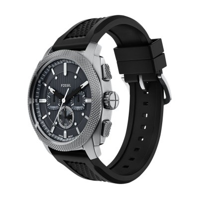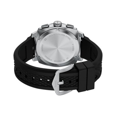 This Fossil watch has a case made of Steel silver with a diameter of 44 mm and is fitted with a rubber strap. Inside the case lies a Miyota movement and the watch features a Mineral crystal.