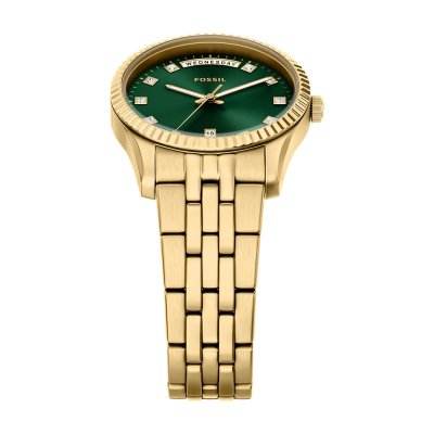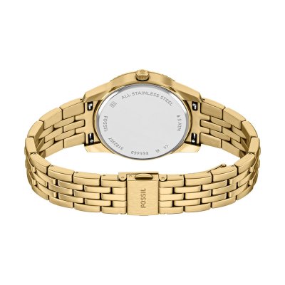This Fossil watch has a case made of Steel silver with a diameter of 34 mm and is fitted with a Steel silver strap. Inside the case lies a Seiko Instruments Inc. movement and the watch features a Mineral crystal.