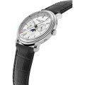 The Frederique Constant Business Timer is a sophisticated quartz gents watch with a polished stainless steel case, and featuring day-date indicators, a moonphase and an arrow tipped pointer that indicates the week, all arranged in a clear, easy-to-read layout. Powered by the reliable FC 270 quartz movement, this watch delivers on precision and longevity as well as style.