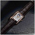 The Frederique Constant Classics Carrée watch is a permanent value in the collection. The family has been expanded with a Heart Beat Automatic version. A discreet opening at twelve o’clock reveals the movement: the watch’s beating heart. A refined creation powered by an automatic FC-311 (based on a Sellita SW-200) calibre with a 38-hour power reserve. The design of the watch is classic Art deco with a contrasting herringbone pattern in the center of the dial and clear, sharp Dauphine hands. A watch for lovers of classic luxury watches.