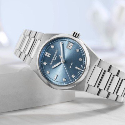 This Highlife ladies watch is designed to deliver both style and versatility for modern women. It is a trendy 31 mm watch with an integrated steel bracelet, which can be interchanged with the additional rubber strap that comes with the set. The shiny, sunray or mother of pearl dial features eight diamond hour indicators and a date window at three o’clock. The accurate FC-240 quartz movement (based on the Ronda 705) that powers this gorgeous watch has a battery life of a stunning 60 months! The Highlife ladies watch is really living its best life, remaining chic, but a little impertinent at the same time. The set a perfect gift for a woman with a discerning eye and a modern, active lifestyle.