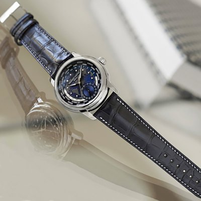 The Classics Worldtimer Manufacture, presented for the first time in 2012, has over the years become a permanent fixture in the Frederique Constant collection as one of their most sold Manufacture timepieces. This watch shows 24 hours and day-night in 24 major cities around the world, adjustable via one single crown: ready to explore the world! The self-winding FC-718 mechanical movement has a power reserve of 38 hours and is visible through the case back, water-resistant up to 50 (stainless steel) or 30 meters (18K Gold). The 24 cities disc representing 24 time zones on Earth, is engraved in the centre of the dial. No separate day/night indicator is required; the inner disc has been engraved with 12 hours on the light area (cities where it is day) and 12 hours on the dark area (where it is night-time). A creation of a modern classic and timeless design, this Worldtimer is a prime example of a value for money, well designed, well made and extremely desirable Manufacture watch!