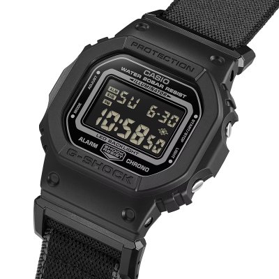 This G-Shock watch has a case made of Bio-sourced resin with a diameter of 42.8 mm and is fitted with a textile strap. Inside the case lies a Casio movement and the watch features a Mineral crystal.