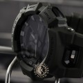 This G-Shock watch has a case made of Plastic / Resin with a diameter of 48.9 mm and is fitted with a Resin strap. Inside the case lies a Casio movement and the watch features a Mineral crystal.