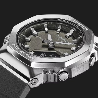 This G-Shock watch has a case made of Stainless steel and resin with a diameter of 40.5 mm and is fitted with a Bio-sourced resin strap. Inside the case lies a Casio movement and the watch features a Mineral crystal.