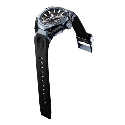 The MTG-B4000 introduces an exciting innovation to the line of MT-G ultra-high-end G-Shock watches. It is the first watch to be designed with the aid of Artificial Intelligence. The development process was co-creation between human designers focused on design and engineering, and AI for optimizing analysis, simulation and modeling, based on the G-Shock test data the brand has gathered over the past 40 years. AI was also used to simulate impact from every possible angle and generate a 3D-model for specified structural strength and material property requirements. The result is an even stronger and fresh and unique looking watch that is still distinctly G-Shock. A bridge-like frame from a carbon and fiber glass laminate connects the lug structures of the watch. Combined with the band connecting directly to this frame and a screwless design attaching the metal and carbon parts, this guarantees optimal durability and resilience. This revolutionary new watch may be tough, it also shows finesse in its finishings; To craft the case back Metal Injection Molding (MIM) was used. This is injecting fine metal powder into molds to achieve a complex 3D form. And the watch’s metal components were hand-polished by master craftspeople. Off course, a high-end G-Shock like the MT-G features a high-spec movement with MULTIBAND6 radio control, Bluetooth connectivity, and all the usual advanced functions such as a 27-city world time display, fully automatic calendar and solar charging with 5 months of autonomy in total darkness.