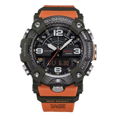 This G-Shock watch has a case made of Carbon reinforced resin with a diameter of 51.3 mm and is fitted with a Bio-sourced resin strap. Inside the case lies a Casio movement and the watch features a Mineral crystal.