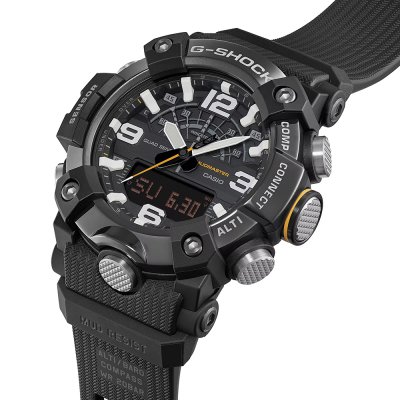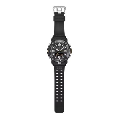 This G-Shock watch has a case made of Carbon reinforced resin with a diameter of 51.3 mm and is fitted with a Bio-sourced resin strap. Inside the case lies a Casio movement and the watch features a Mineral crystal.