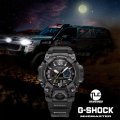The Master of G Mudmaster GWG-B1000 is a collaboration between G-Shock and Team Land Cruiser Toyota Auto Body (TLC). It is an extraordinary addition to the Mudmaster family; Inspired by the nighttime legs of the Dakar Rally, the toughest race in the world. The metal exterior of the watch was crafted with high-precision forging techniques and holds a high strength carbon fiber-reinforced resin case. The stark all-black design is enhanced by an ion-plated gold second hand and strap loop inspired by moonlight across the desert, while the strap’s texture represents the shifting sand dunes. The color-accents on the watch in turn are inspired by the TLC navigation system.