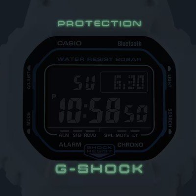 This G-Shock watch has a case made of Plastic / Resin with a diameter of 42.8 mm and is fitted with a Resin strap. Inside the case lies a Casio movement and the watch features a Mineral crystal.