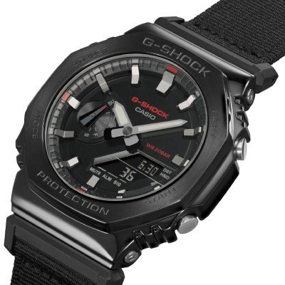 This G-Shock watch has a case made of Stainless steel and resin with a diameter of 44.4 mm and is fitted with a textile strap. Inside the case lies a Casio movement and the watch features a Mineral crystal.