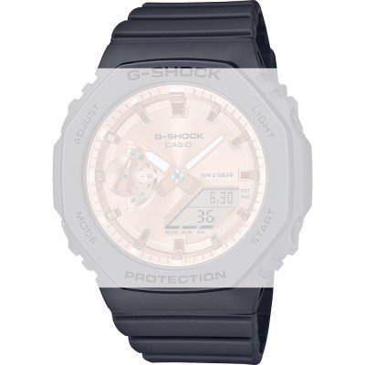 This G-Shock watch strap is made of resin and is attached to the watch by means of quick release pushpins. The band has a width of 24 mm and is closed by means of a buckle. The strap has no straight mount which means that this strap is only suitable for the watches listed below.