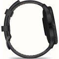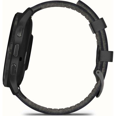 This Garmin watch has a case made of Fibre-reinforced Resin with a diameter of 45 mm and is fitted with a leather strap. Inside the case lies a Garmin movement and the watch features a Corning Gorilla Glass 3 crystal.