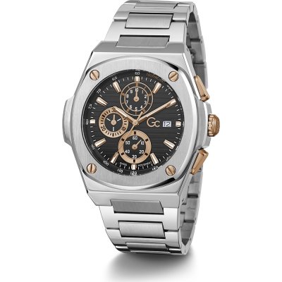 This GC watch has a case made of Steel silver with a diameter of 44 mm and is fitted with a Steel silver strap. Inside the case lies a Ronda movement and the watch features a Sapphire coated mineral crystal.