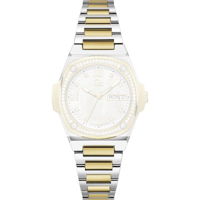 This GC watch strap is made of metal and is attached to the watch by means of steel pins. The band has a width of 21 mm and is closed by means of a deployment clasp with safety. The strap has no straight mount which means that this strap is only suitable for the watches listed below.