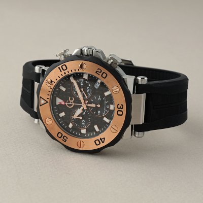 This GC watch has a case made of Steel silver with a diameter of 44 mm and is fitted with a rubber strap. Inside the case lies a Ronda movement and the watch features a Mineral crystal.